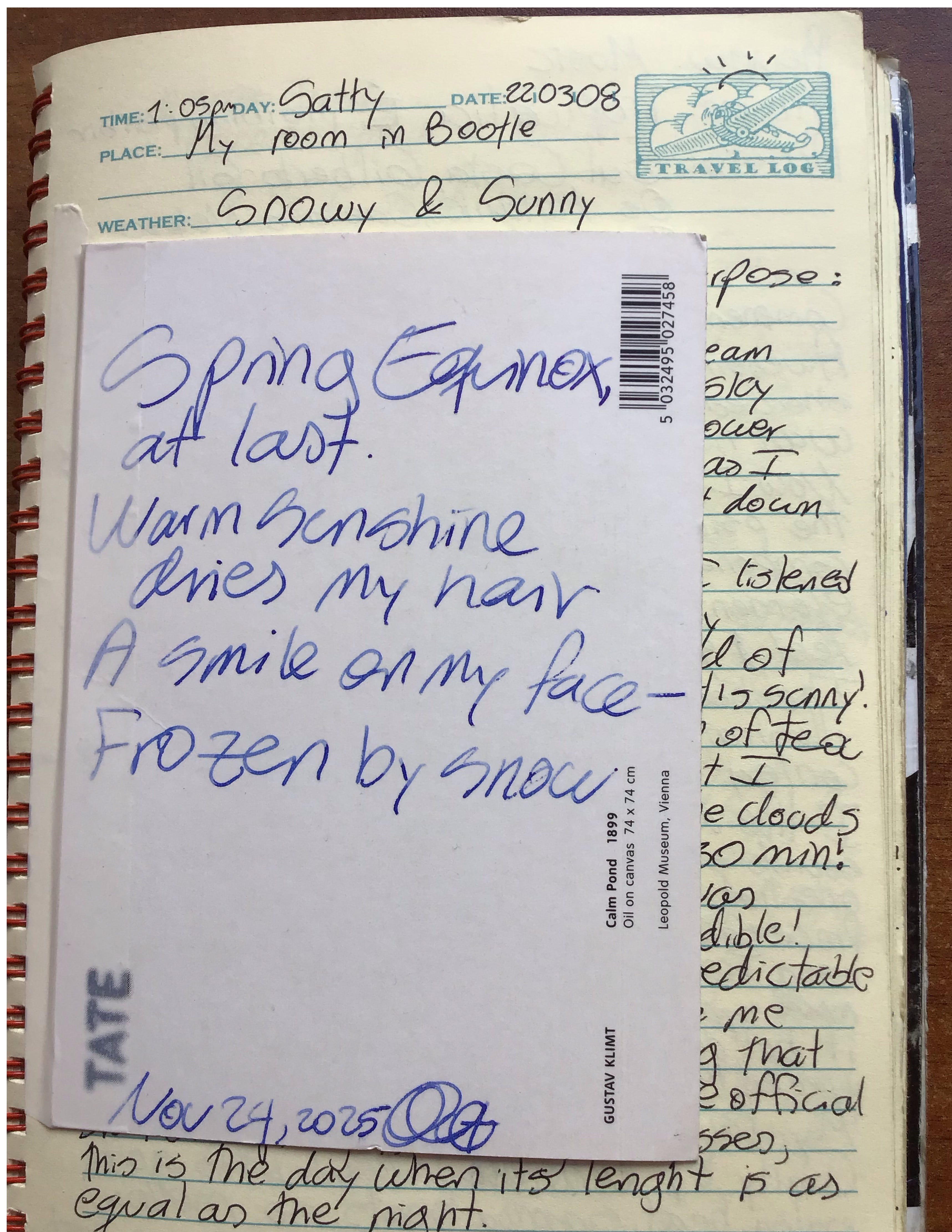Finally I transcribed the poem to a postcard and now that journal entry looks like this: